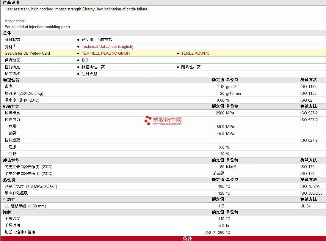 TEREZ ABS/PC Blend 2002物性表 见图片