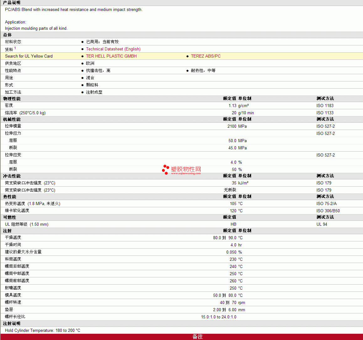 TEREZ ABS/PC Blend X 2000物性表 见图片