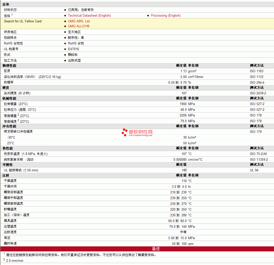 UMG ALLOY PC/ABS TC-80A物性表 见图片