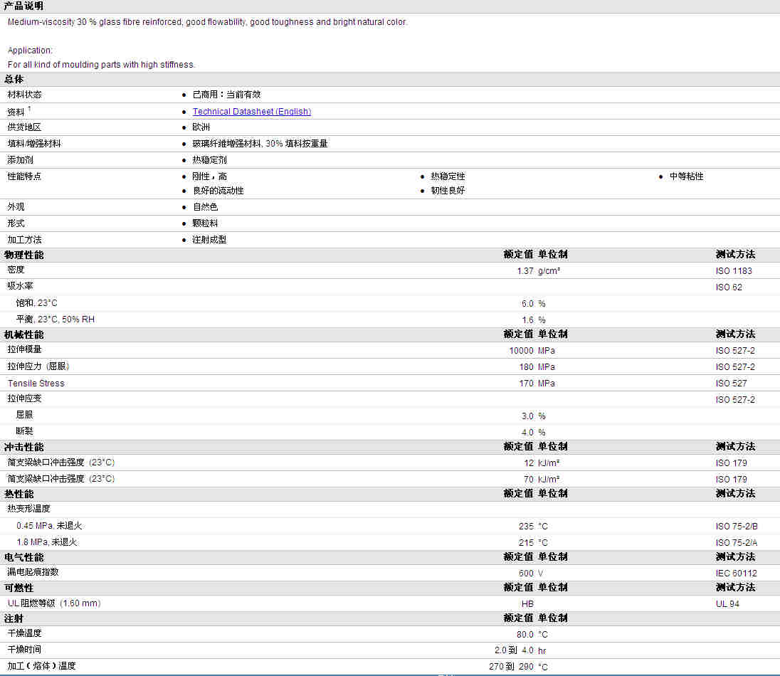 TEREZ PA66 7500 GF 30物性表资料详细内容如图