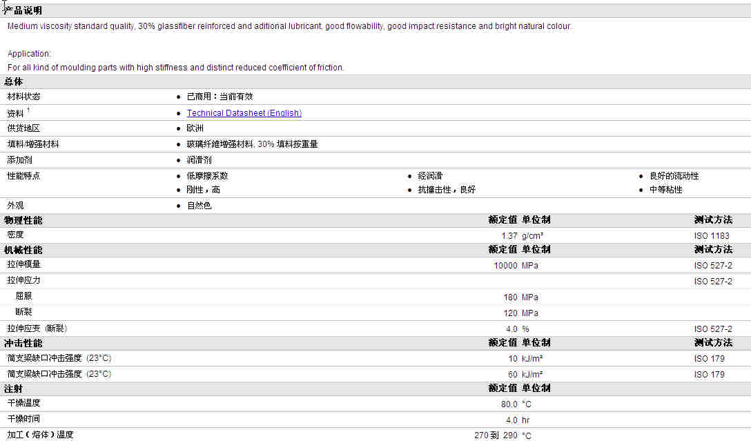 TEREZ PA66 7500 GF 30 GL物性表资料详细内容如图