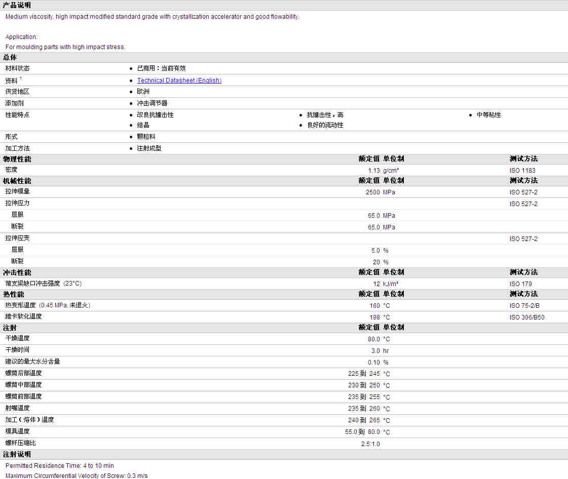 TEREZ PA6 7750 TK物性表资料详细内容如图