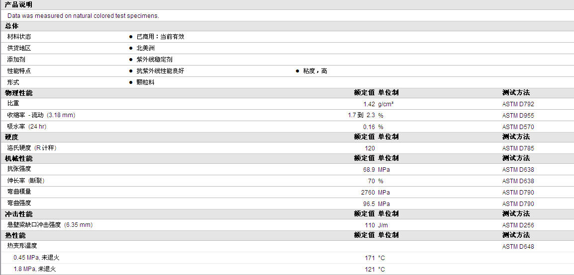 更多TYNEA POM 3130物性表资料见附件: