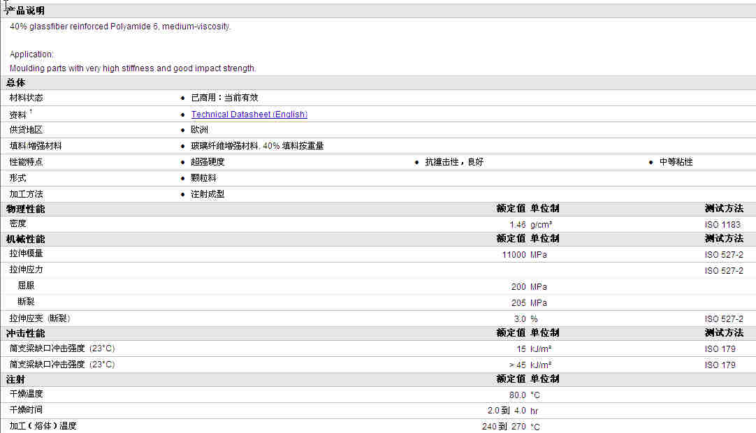 TEREZ PA6 7500 GF40物性表资料详细内容如图