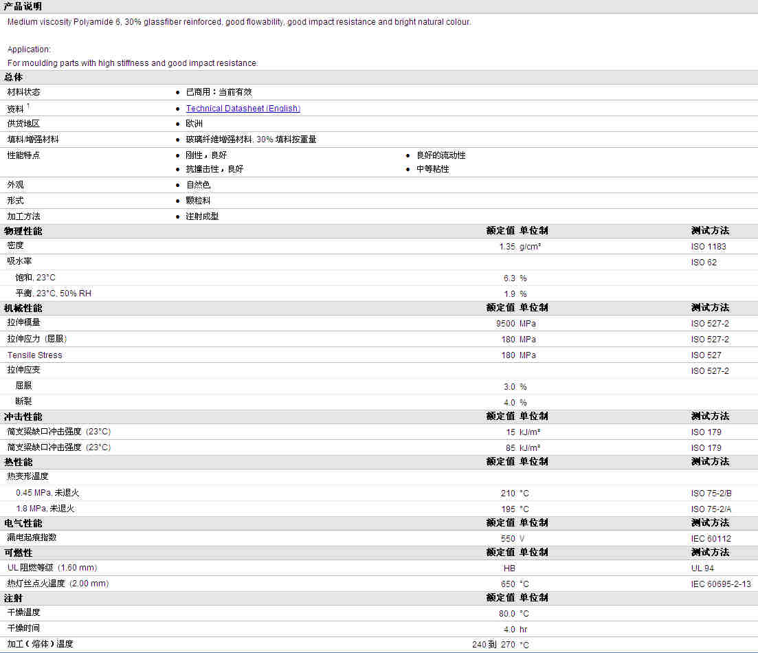 TEREZ PA6 7500 GF30物性表资料详细内容如图