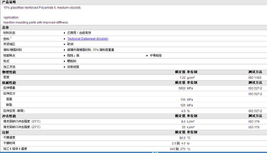TEREZ PA6 7500 GF15物性表资料详细内容如图