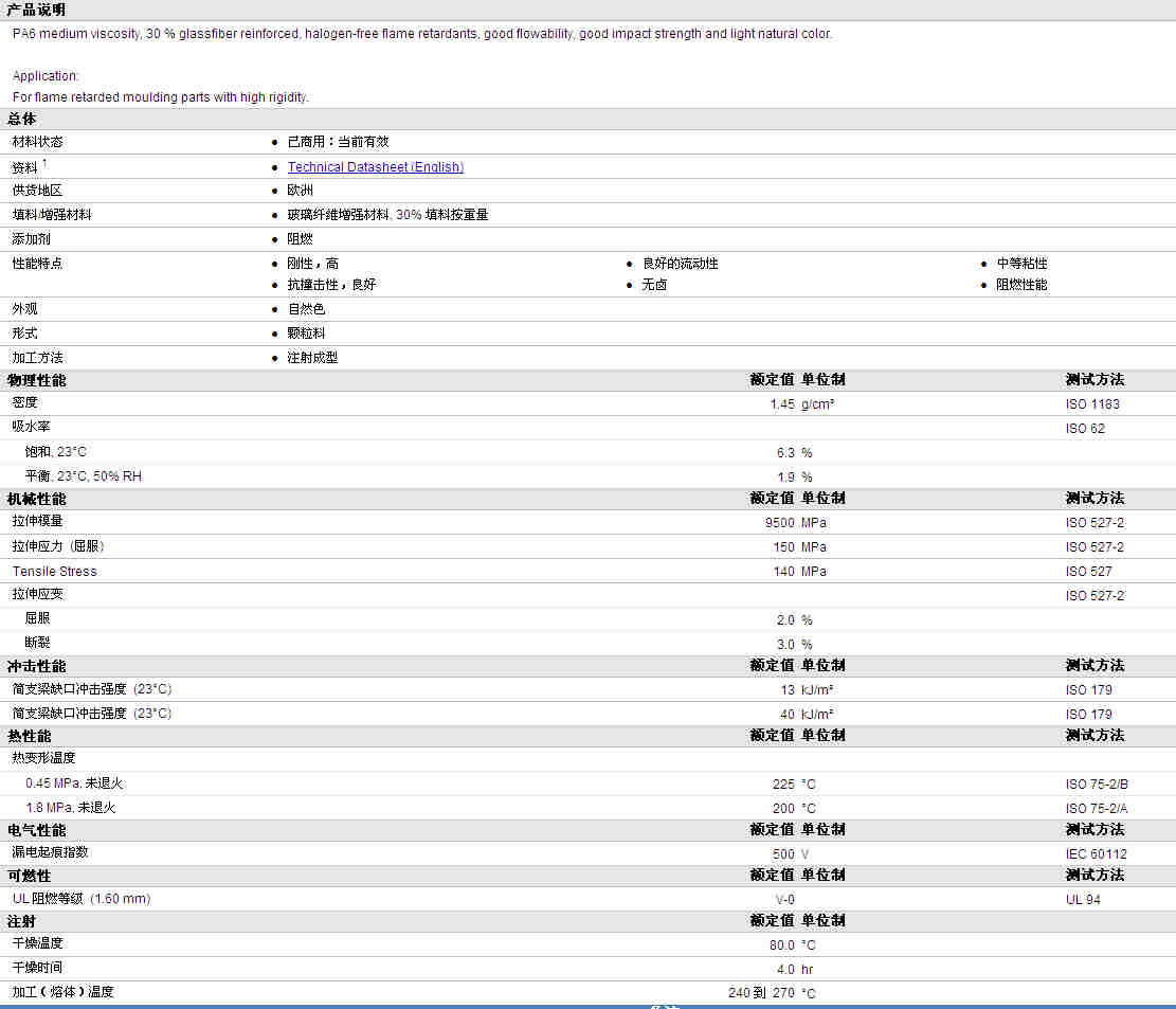 TEREZ PA6 7500 GF 30 FL HF /2物性表资料详细内容如图