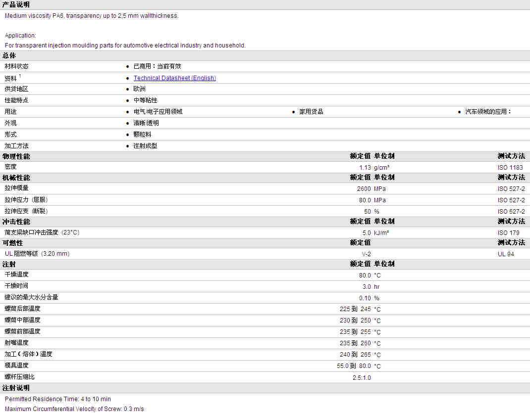 TEREZ PA6 1000 TR物性表资料详细内容如图