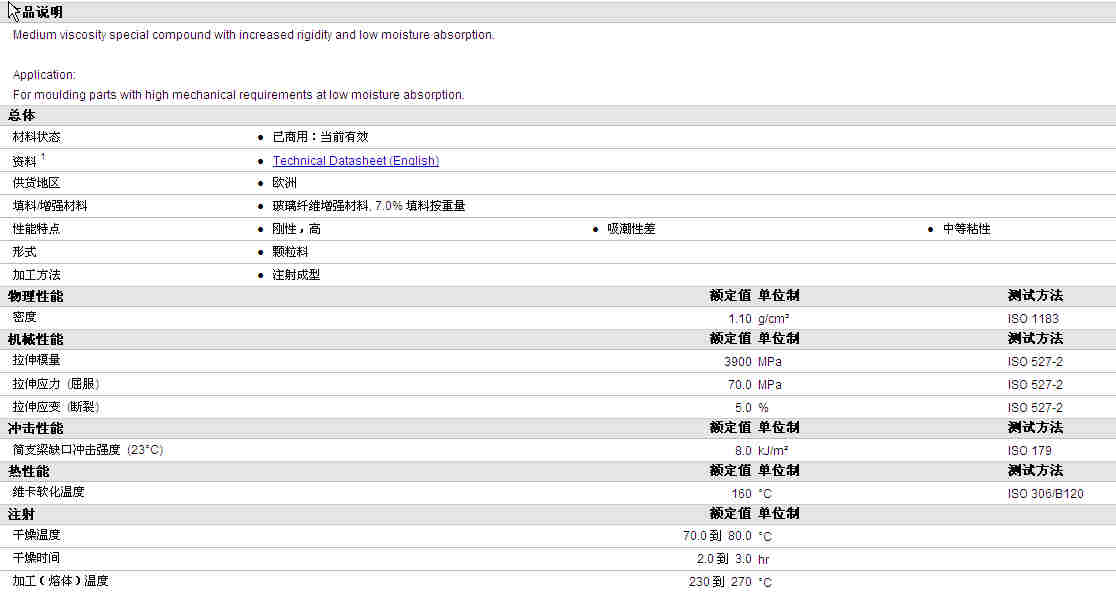 TEREZ PA/PP 7500 GF 7物性表资料详细内容如图