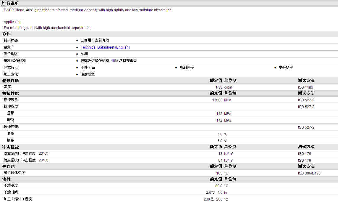 TEREZ PA/PP 7500 GF 40物性表资料详细内容如图