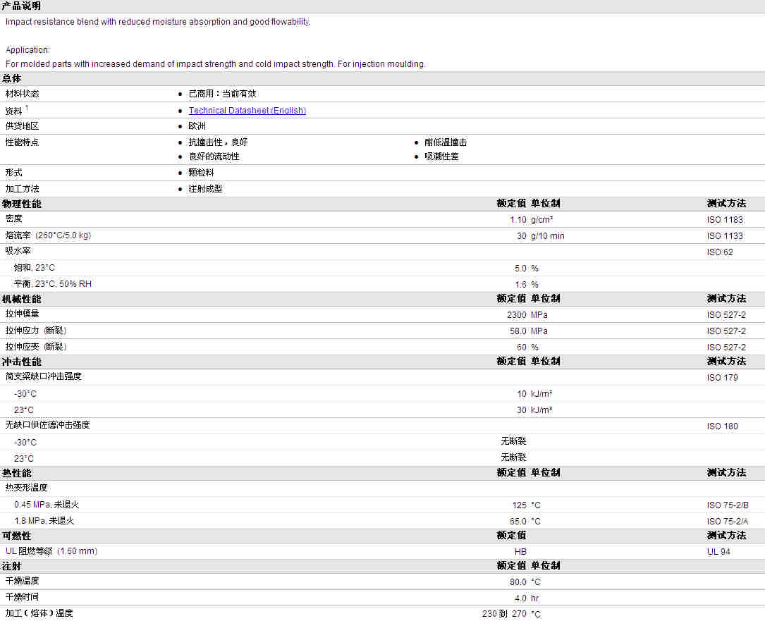 TEREZ PA/ABS Blend 3610/4物性表资料详细内容如图