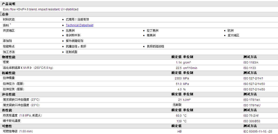 如需了解SCHULABLEND® (ASA/PA) M/MW SF UV物性表更多详情pdf文档资料,最新行情报价,物质安全资料表(MSDS)、材质证明、UL黄卡等可来电咨询:袁小姐13266047972 QQ:767320520
