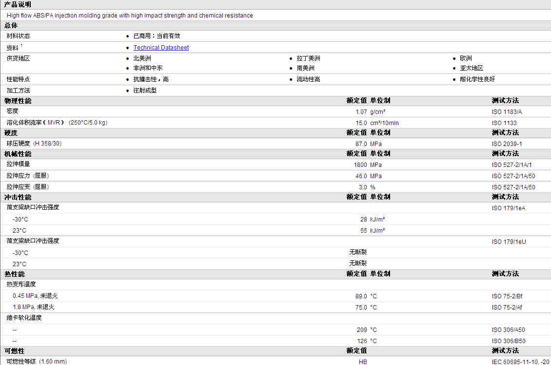 SCHULABLEND® (ABS/PA) M/MK SF物性表资料详情见图