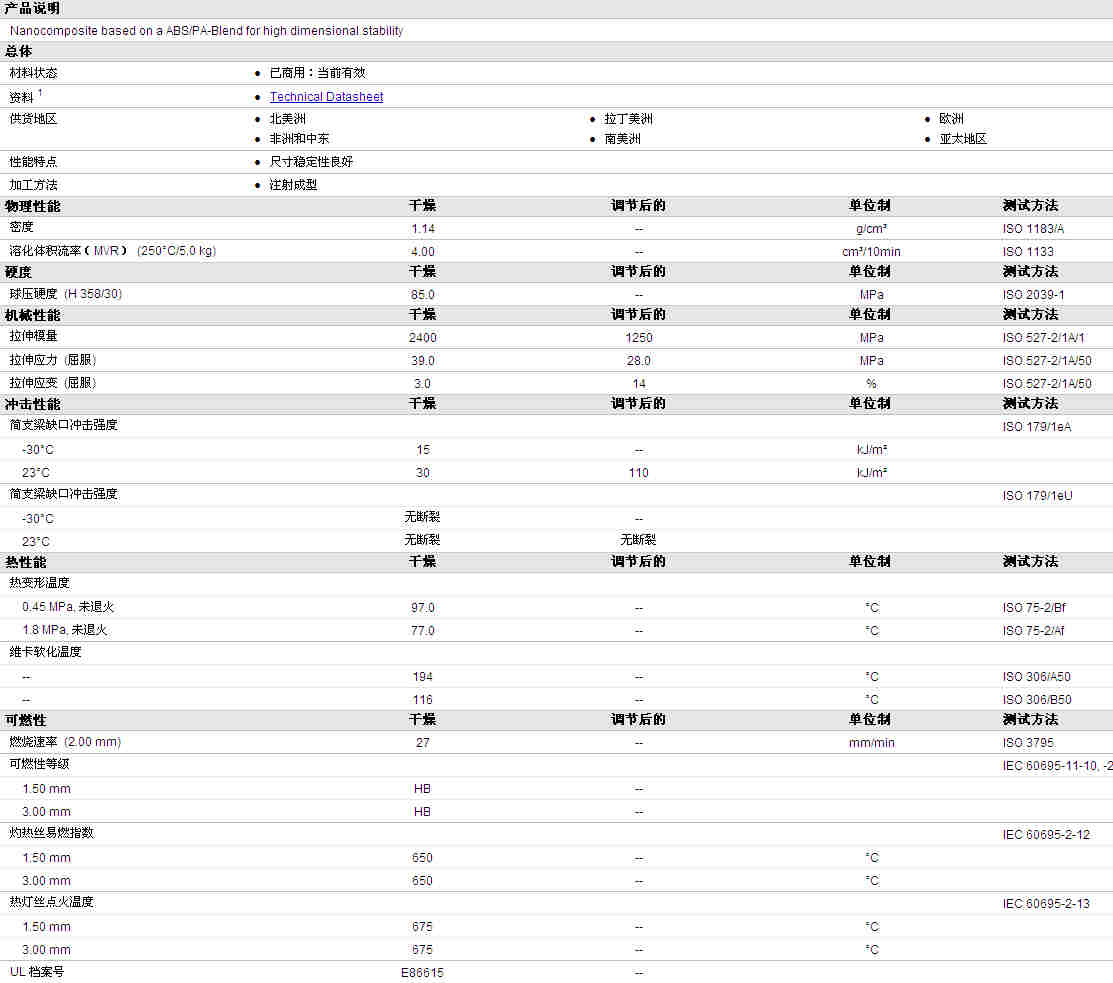 如需了解SCHULABLEND® (ABS/PA) M/MK NC 800物性表更多详情pdf文档资料,最新行情报价,物质安全资料表(MSDS)、材质证明、UL黄卡等可来电咨询:袁小姐13266047972 QQ:767320520