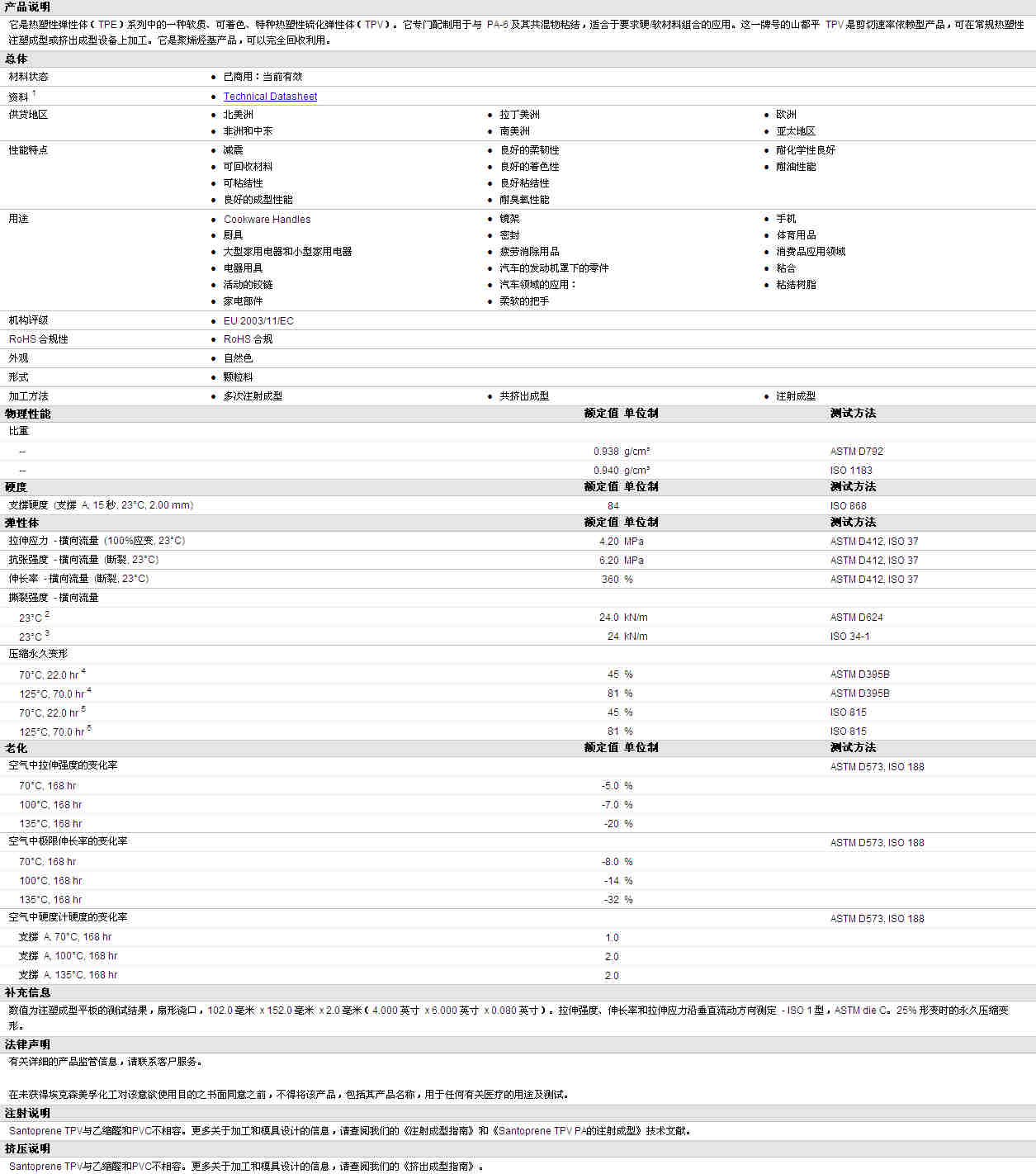 Santoprene TPV 8291-85PA物性表资料详情见图