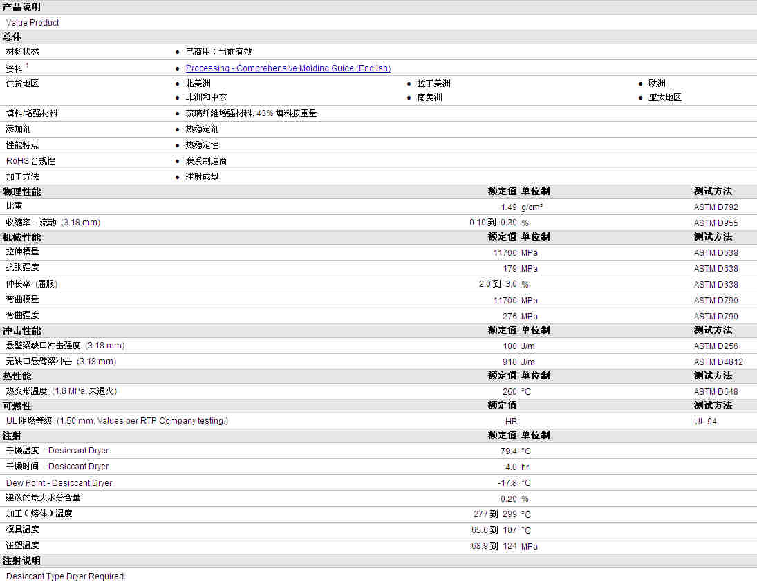 RTP Compounds PA66 43 GF BLK物性表资料详情见图