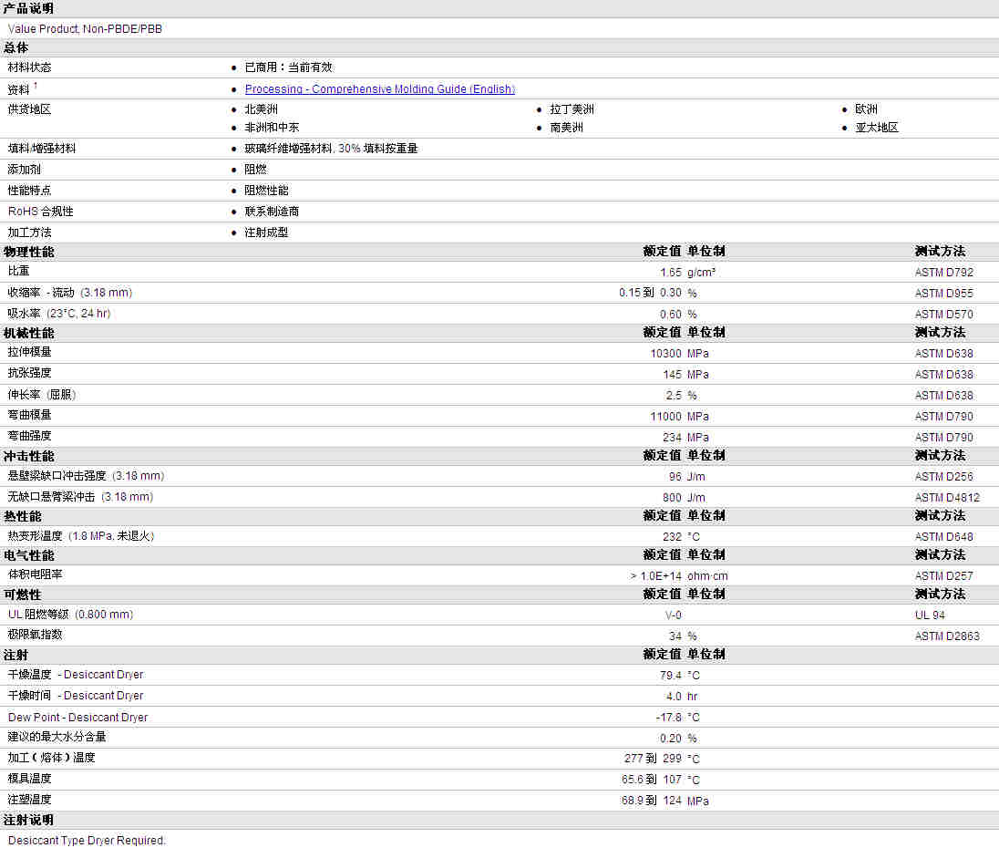 RTP Compounds PA66 30 GF FR0 BLK物性表资料详情见图