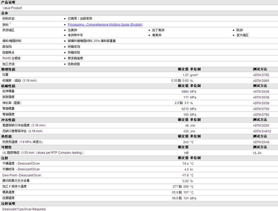 RTP Compounds PA66 20 GF BLK物性表资料详情见图