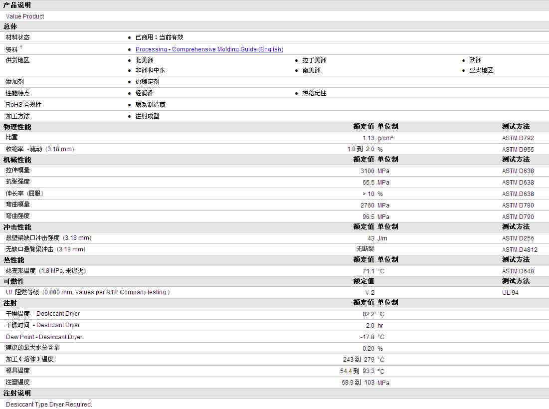 RTP Compounds PA6 L BLK物性表资料详情见图