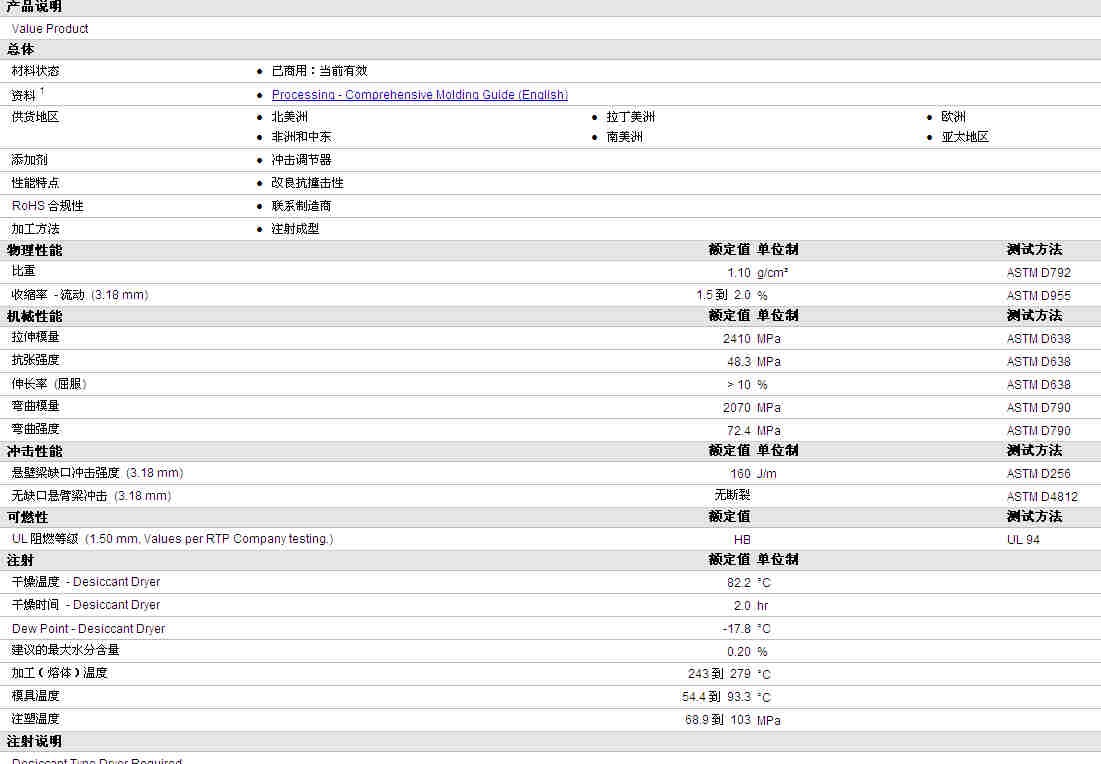 RTP Compounds PA6 HI NAT 物性表资料详情见图