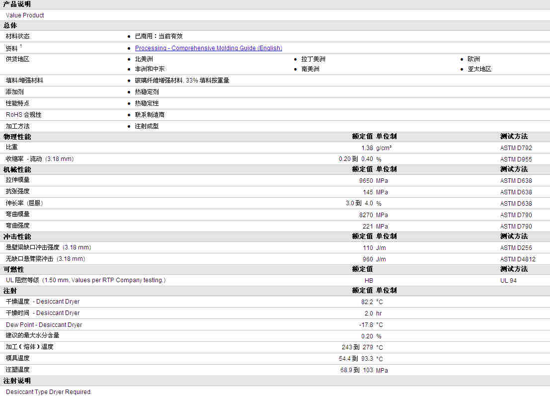 RTP Compounds PA6 33 GF BLK物性表资料详情见图