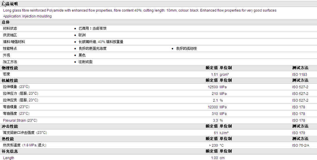 Pryltex V40PA66 L10 black物性表资料详情见图
