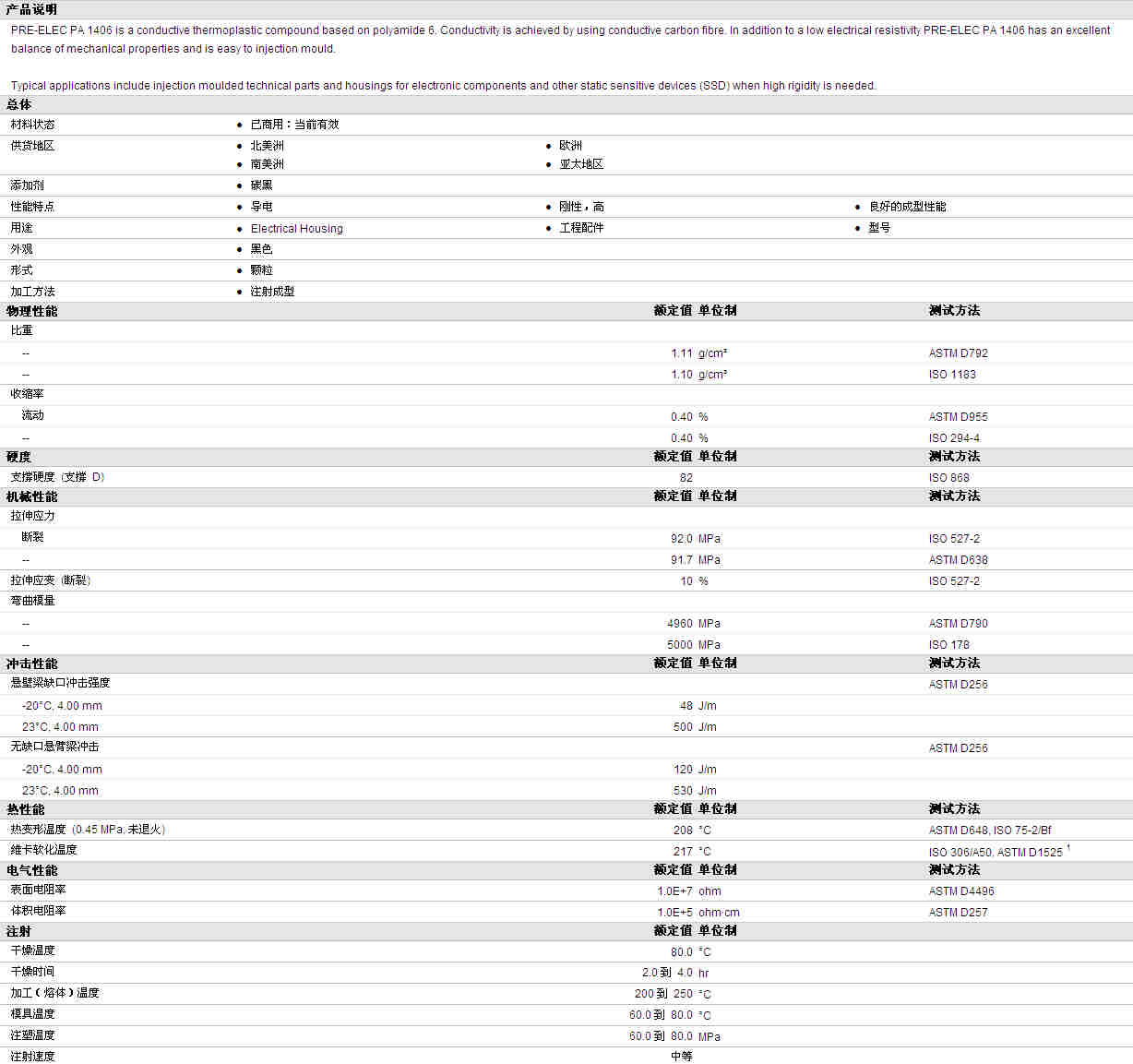 PRE-ELEC PA 1406 物性表资料详情见附件