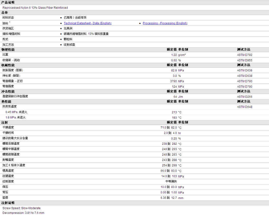 PPR PA6 PA603物性表资料