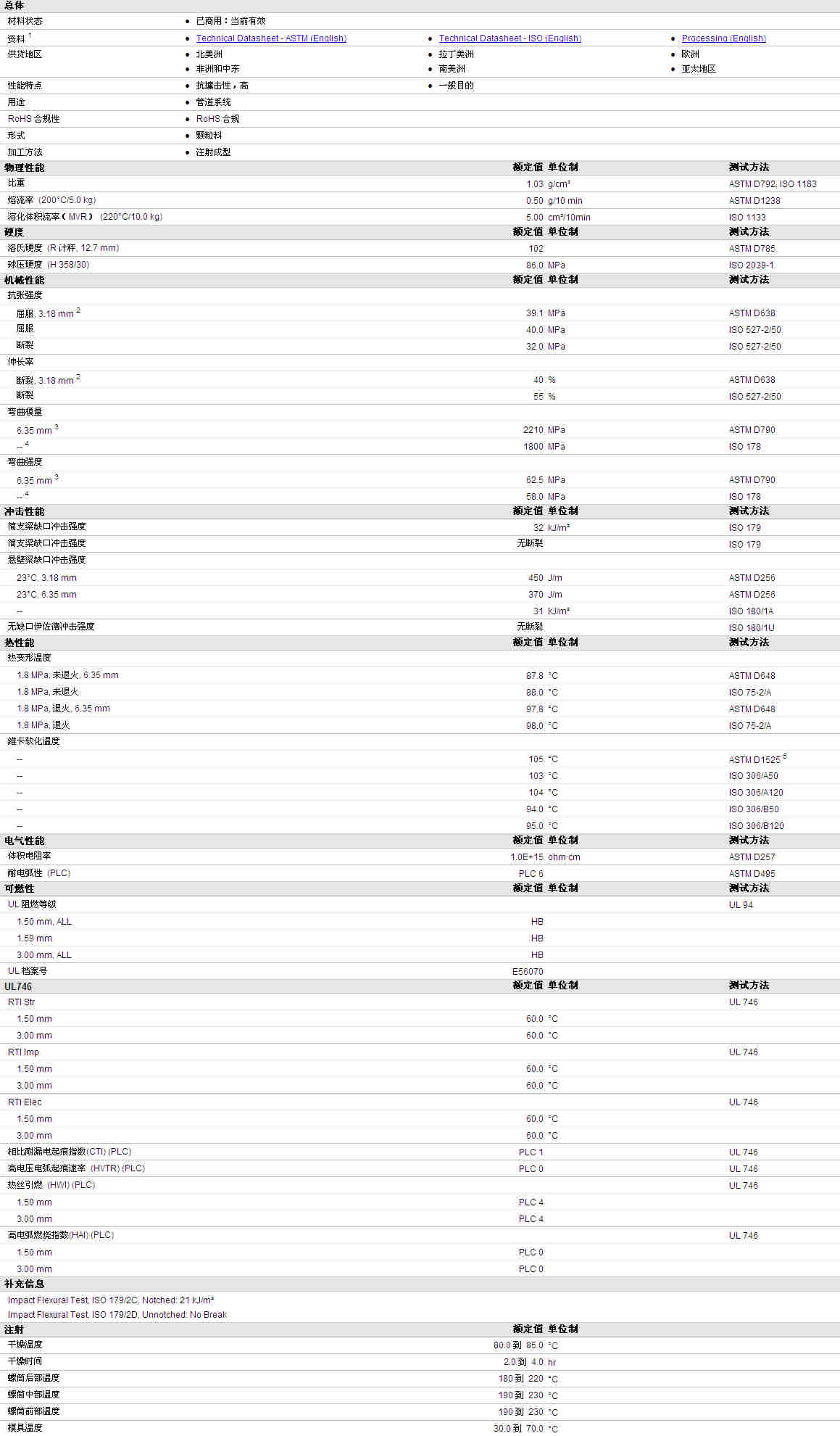 POLYLAC ABS PA-709物性表资料详情见附件