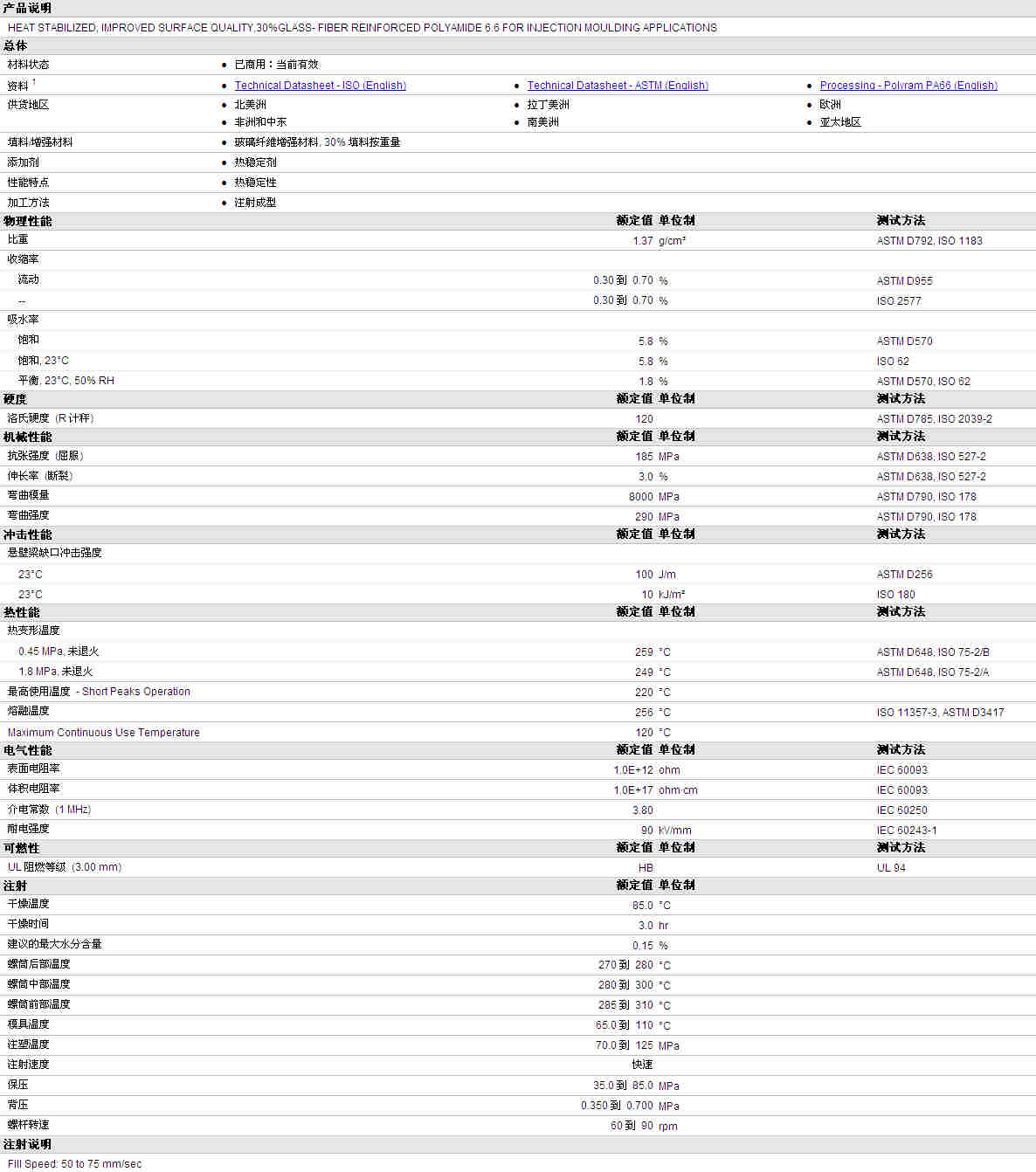 PLUSTEK PA66 PA305G6物性表资料详情见图