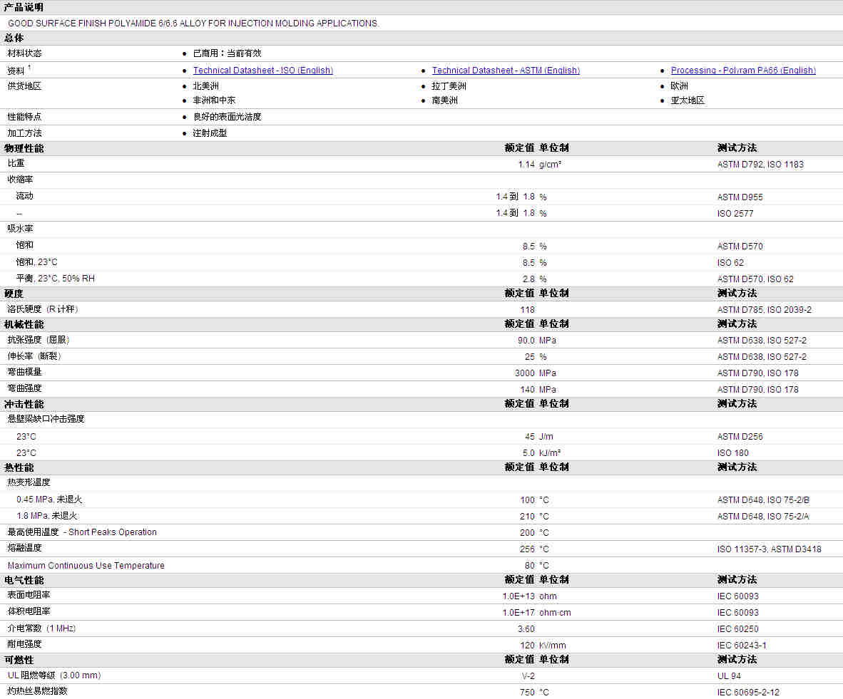 PLUSTEK PA66 PA108物性表资料详情如图所示