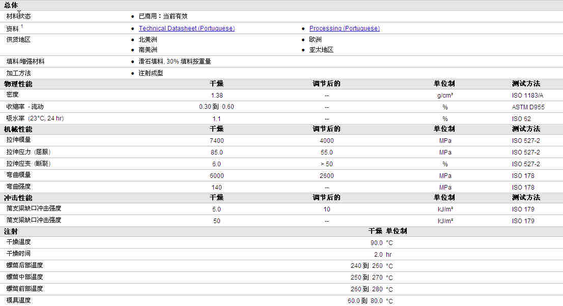 Nypol PA66 PA C3 T30 NTLA010 NS304物性表资料详情如图所示