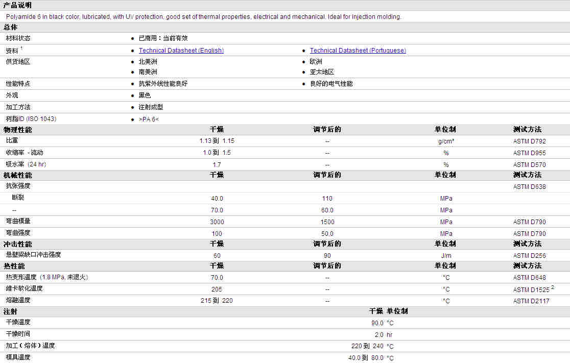 Nypol PA6 PA B3 HL UV PRTA011 NT340物性表资料