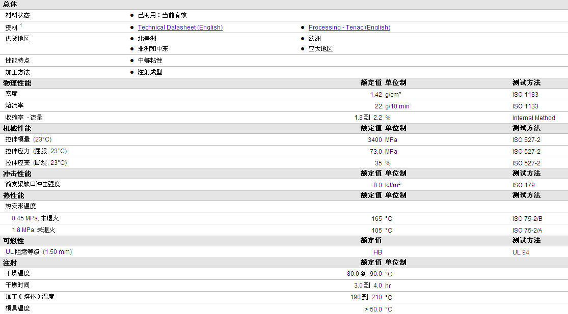 更多Tenac POM 5010物性表资料见下图: