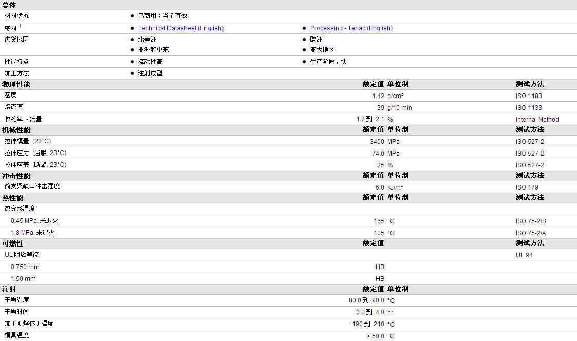 更多Tenac POM 7054物性表资料见下图:
