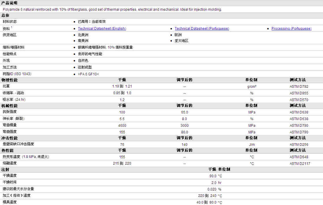 Nypol PA6 PA B3 G10 NTLA010 NT305物性表资料