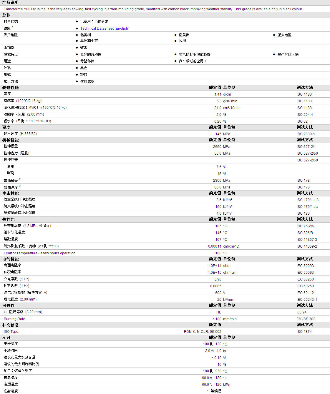 | 溶化体积流率(MVR) (190°C/2.16 kg) | 21.0 | cm³/10min | ISO 1133 |