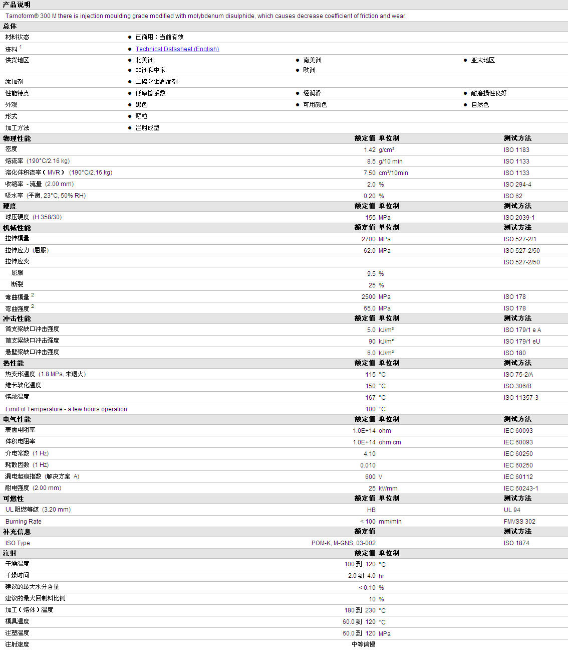 | 溶化体积流率(MVR) (190°C/2.16 kg) | 7.50 | cm³/10min | ISO 1133 |