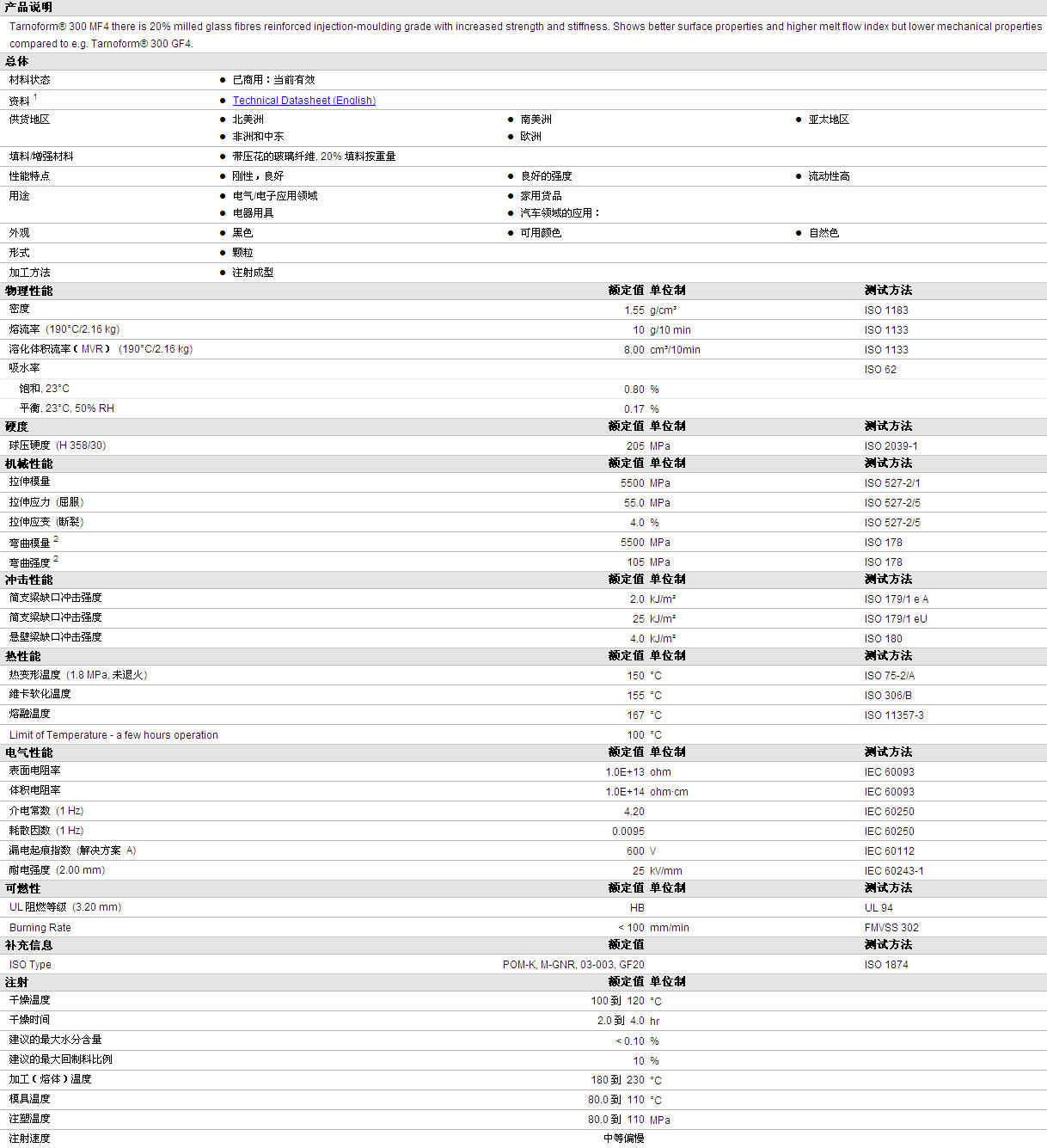 | 溶化体积流率(MVR) (190°C/2.16 kg) | 8.00 | cm³/10min | ISO 1133 |