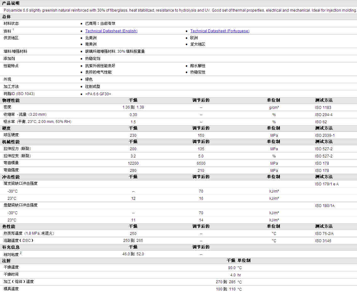 Nypol PA66 PA A3 G30 HS UV RH NTLA013 NR414物性表资料