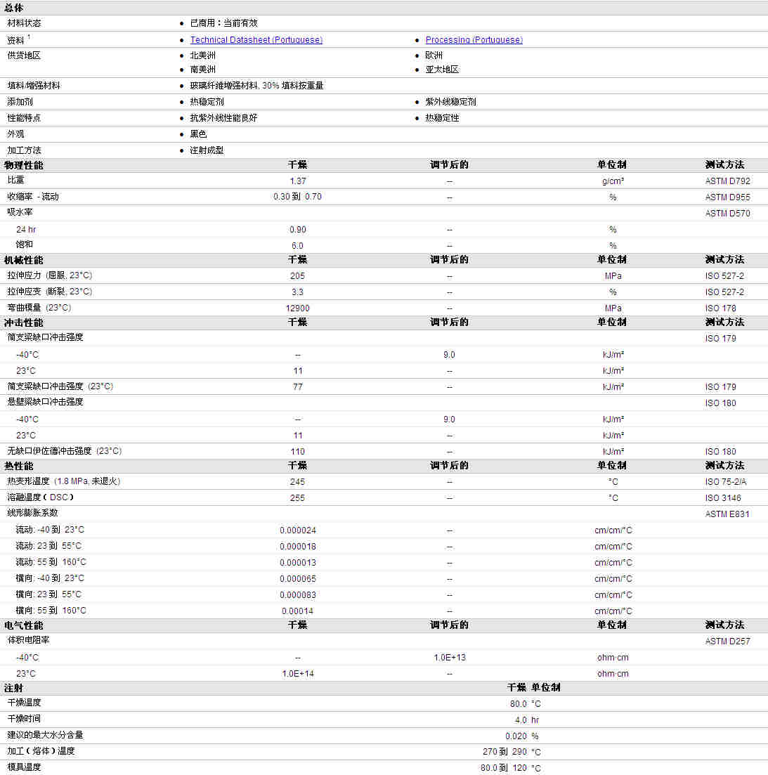 Nypol PA66 PA A3 G30 HS UV PRTA011 NR395物性表资料