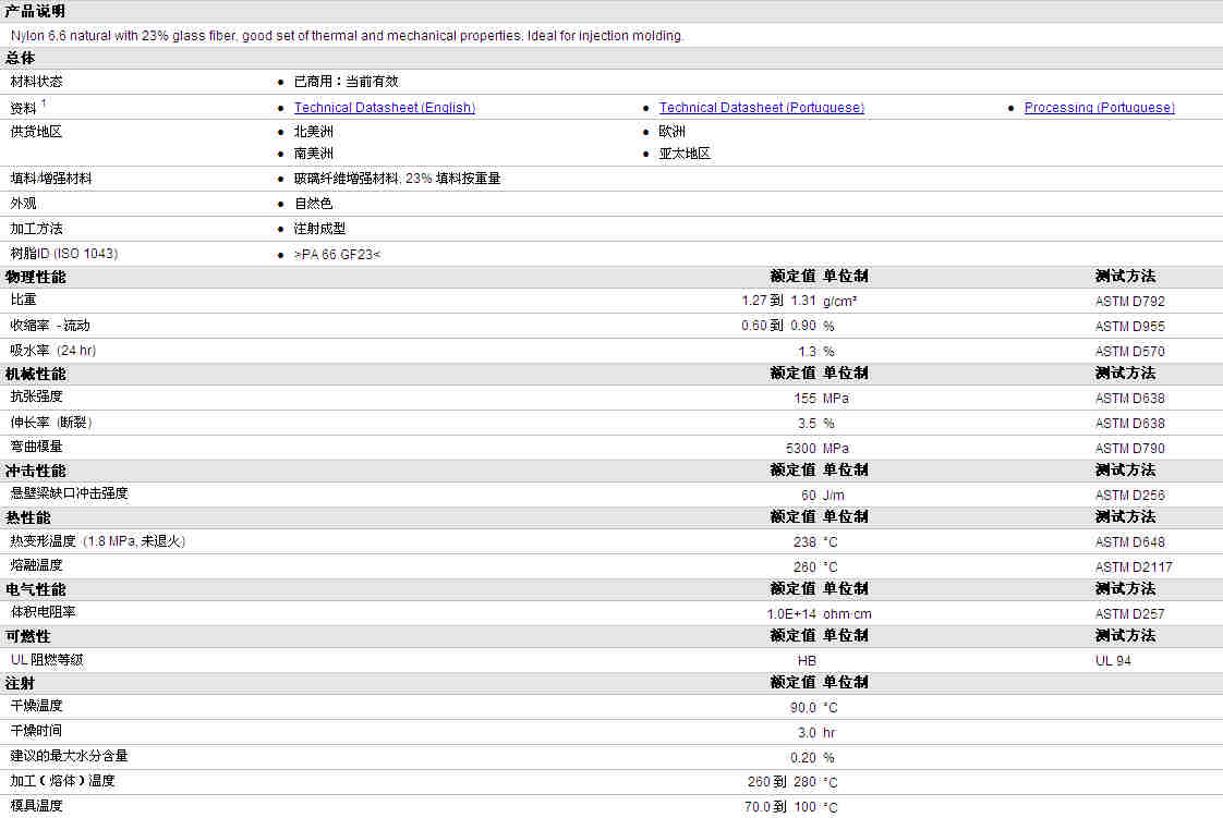 Nypol PA66 PA A3 G23 NTLA010 NR301物性表资料