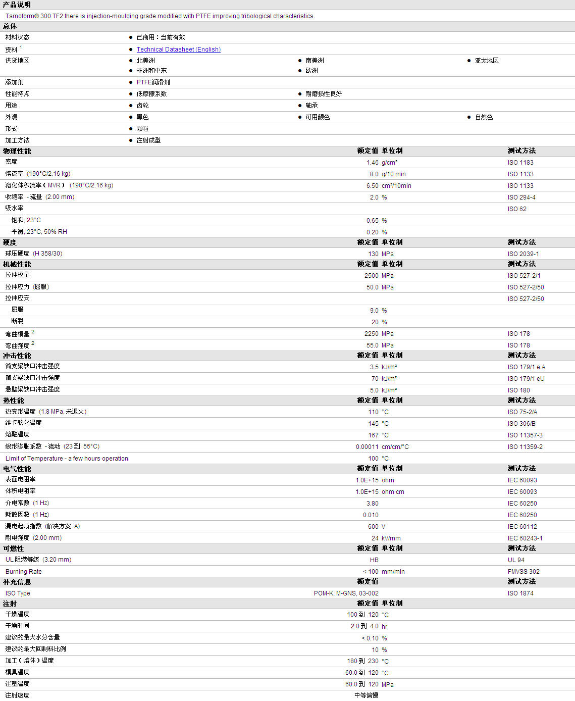 | 溶化体积流率(MVR) (190°C/2.16 kg) | 6.50 | cm³/10min | ISO 1133 |