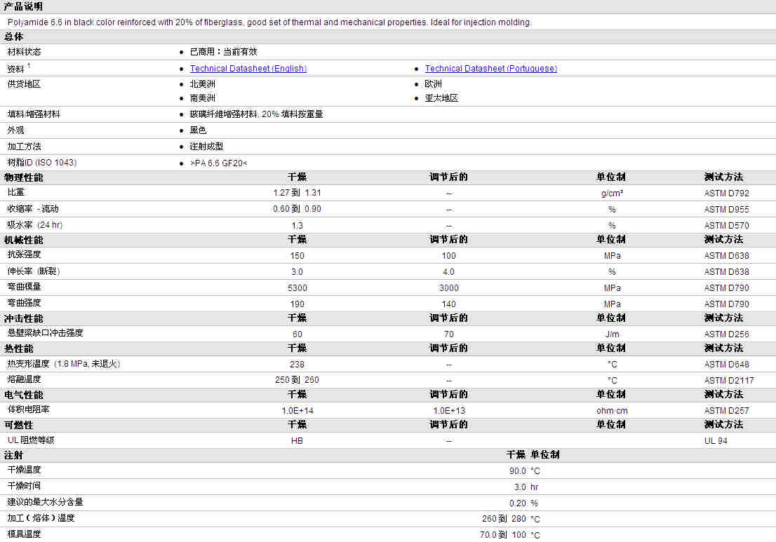 Nypol PA66 PA A3 G20 PRTA011 NR383 MSP物性表资料