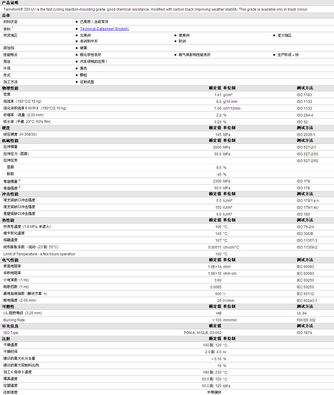 | 溶化体积流率(MVR) (190°C/2.16 kg) | 7.00 | cm³/10min | ISO 1133 |
