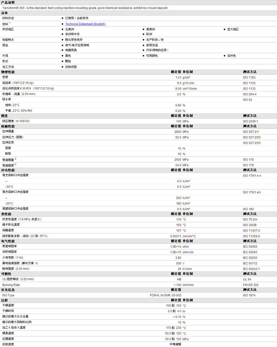 如需了解更多Tarnoform POM 300物性表资料 , SGS,环保证书,UL黄卡,可咨询石先生。QQ:1078333107,手机:18606048646