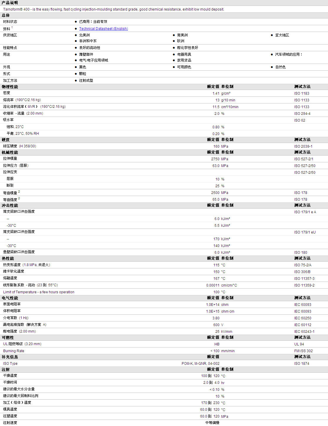 | 溶化体积流率(MVR) (190°C/2.16 kg) | 11.5 | cm³/10min | ISO 1133 |