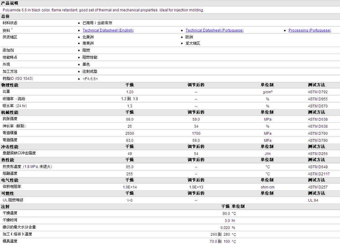 Nypol PA66 PA A3 FR PRTA010 NR382 MSP物性表资料详情见图