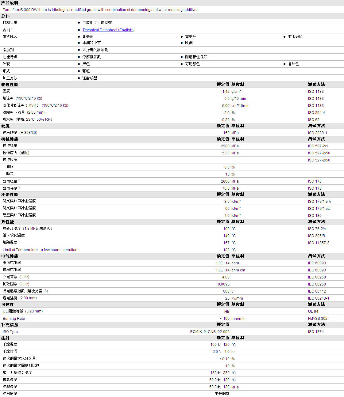 | 溶化体积流率(MVR) (190°C/2.16 kg) | 5.00 | cm³/10min | ISO 1133 |