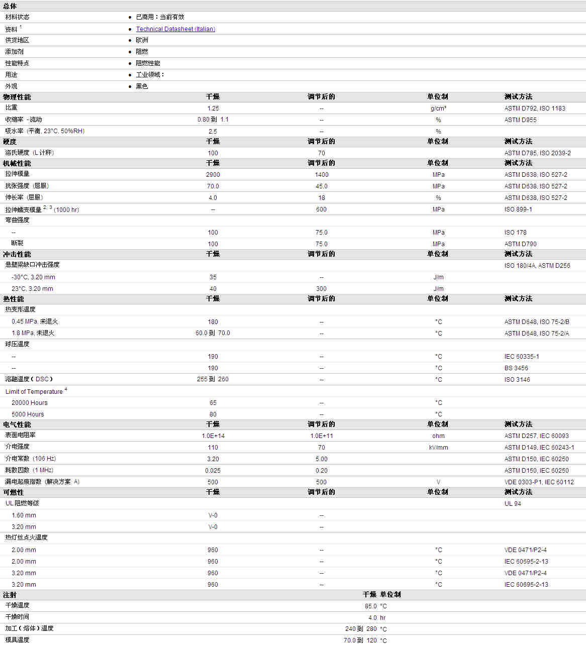 NOVAMIDE PA66 FR IND NERO物性表资料详细内容如图